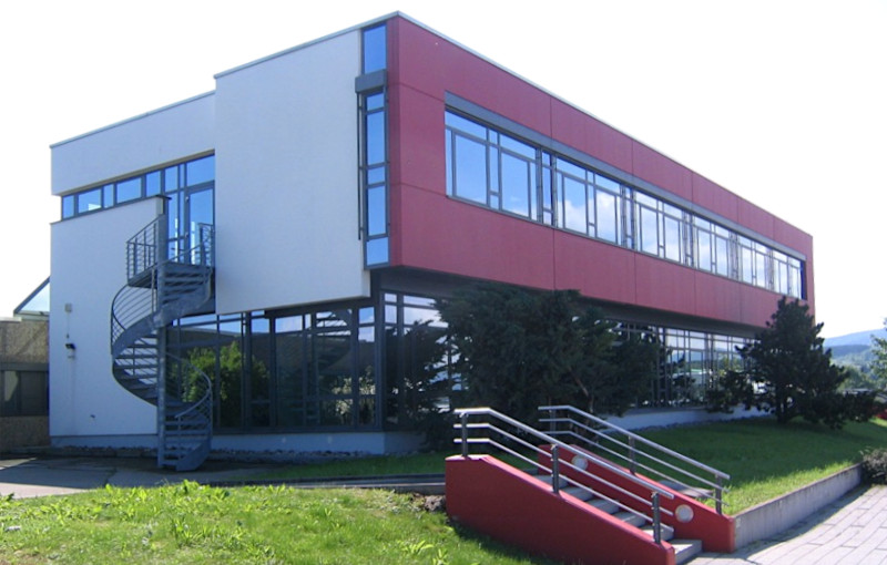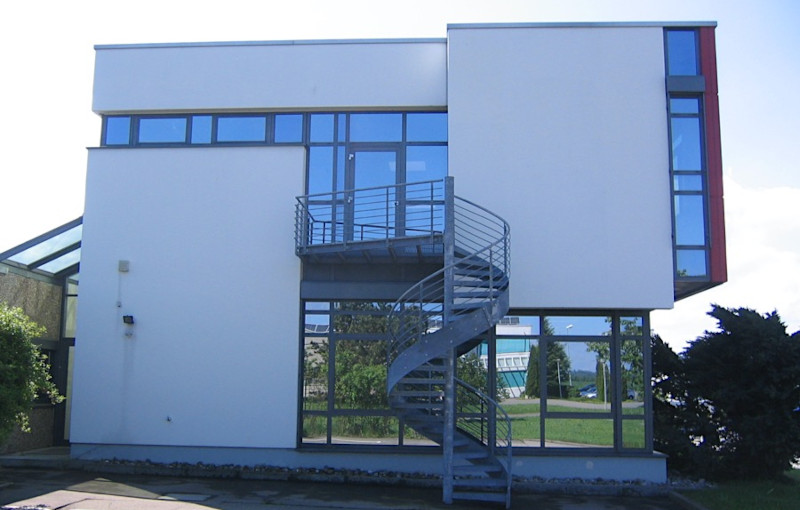 Das in Anbindung an die bereits bestehende Produktionshalle realisierte Gebäude besticht durch ein großzügig verglastes Treppenhaus, das als Kopfbau zur Hauptstraße ausgerichtet ist. Für den späteren Einbau eines Glasaufzuges wurde in dem Treppenhaus eine entsprechende Stahlkonstruktion gefertigt.